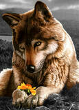 Алмазная вышивка «Волк и красивый цветочек» 40x50 см